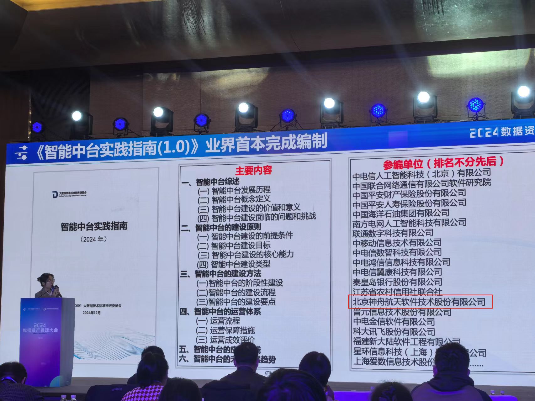 近期,中國通信標準化協會大數據技術標準推進委員會(以下簡稱:數標委在北京舉辦了以“數據重塑價值 智能鏈接未來”為主題的“2024數據資產管理大會”。會上發布了神軟公司參與編制的業界首本《智能中臺實踐指南(1.0版)》,該報告由數標委啟動,以智能中臺系列標準為參考,總結了智能中臺建設實踐方法論,為企業智能中臺建設提供方法論指引。神軟公司基于自主研發的AI平臺產品“智匯AI開發平臺”的建設和應用實踐,進行提煉和總結,為《智能中臺實踐指南(1.0版)》編制及相關標準化工作貢獻了力量。